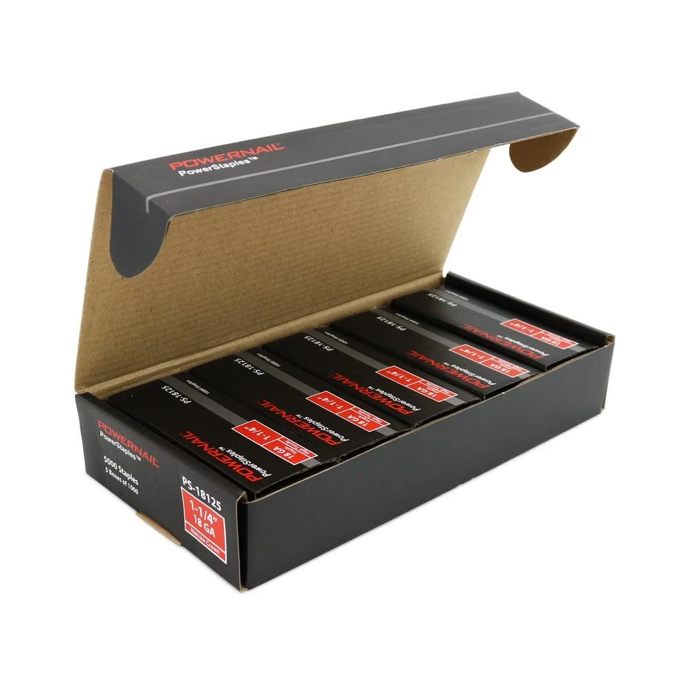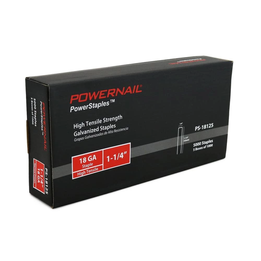 POWERNAILs 18-Gauge Power Staples are professional quality, galvanized steel staples. These fasteners can be used for a variety of purposes and are perfect for the installation of wood flooring into plywood and OSB subfloors. Staples are 1-1/4 in. L with a 1/4 in. crown. These staples can be used with any Narrow-Crown pneumatic stapler, but are best used in POWERNAIL’s models 1845F and 1890U staplers.