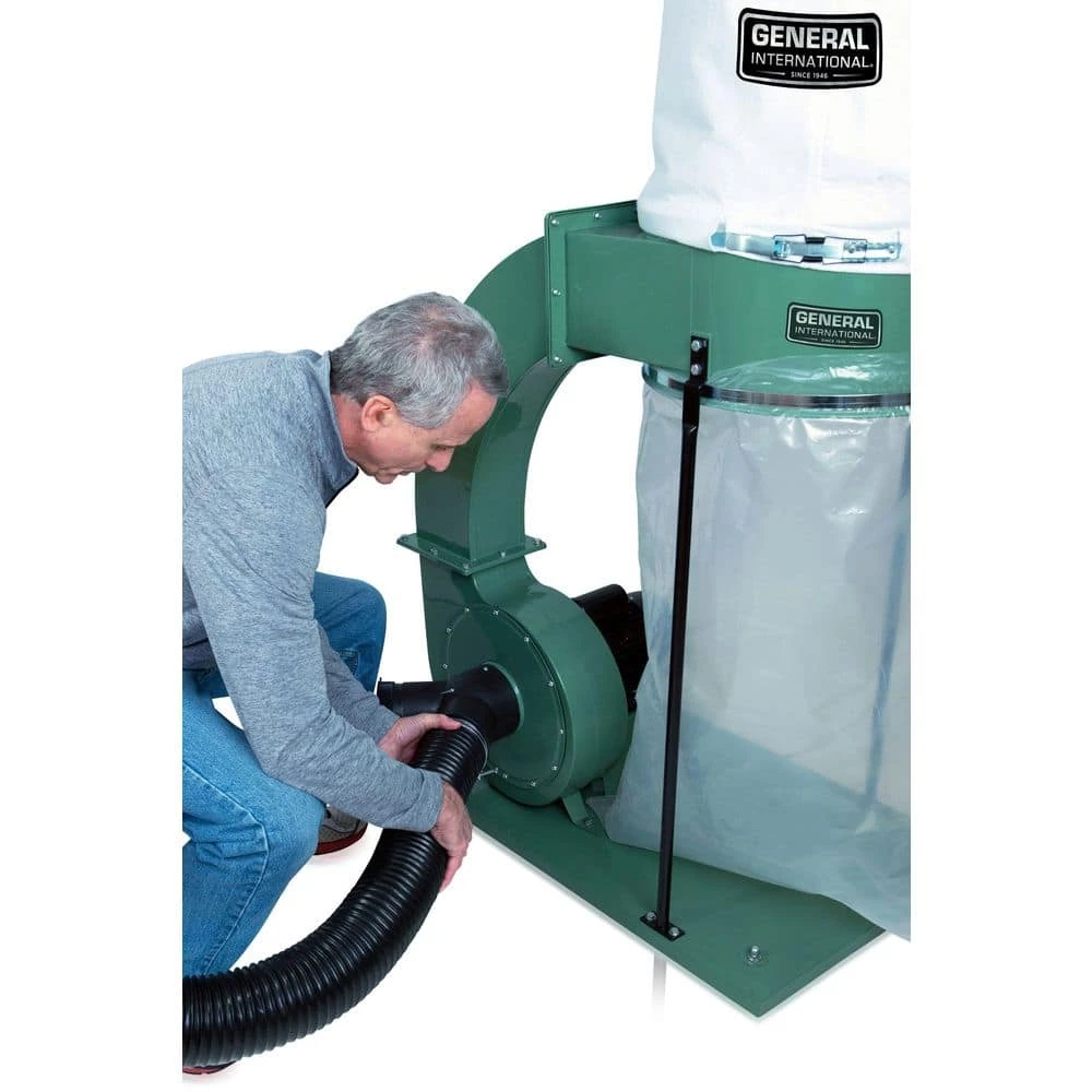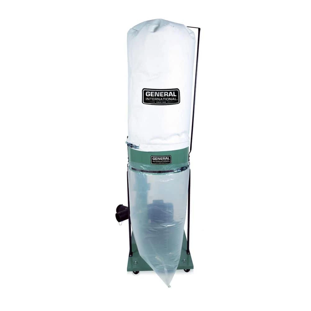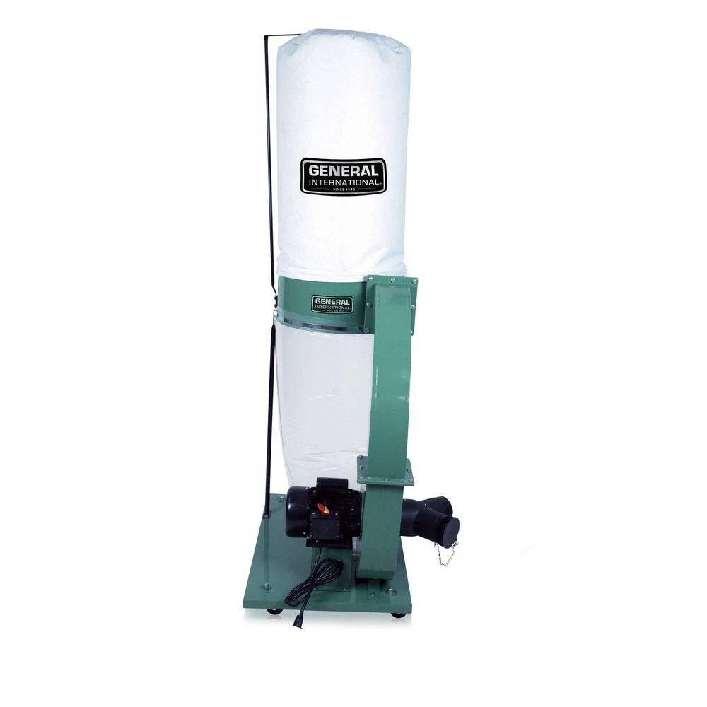 General International specializes in high quality woodworking and metal working machinery and related accessories. General International has been proudly building machinery since 1946 and our mission has always been to provide our customers, be they industrial or educational users or dedicated hobbyists with the highest quality, reliability and durability possible. The 1 HP dust collector has a totally enclosed, fan cooled, permanently lubricated motor. It is designed for industrial applications with a continuous duty rating.