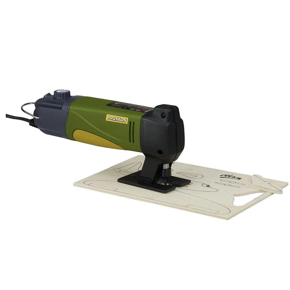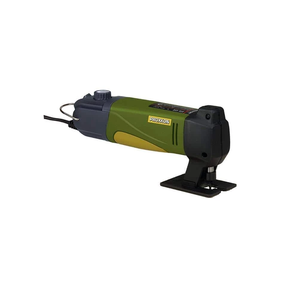 The Proxxon Jig Saw STS 12/E offers fantastic cutting capacity with a balled foot or flat footplate. The full wave electronic speed control allows for consistent power and cutting force throughout the variable speed control range. This tool is ideal for cutting tight curves in wood, non-ferrous metals, and plastics including round surfaces.