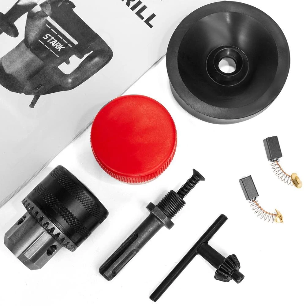 The Stark Electric Rotary Hammer Drill features a powerful 8.3 Amp motor for high performance, producing a pounding force to quickly blast through masonry. This rotary hammer drill features 3 modes of operation to choose between drill, hammer and hammer drill mode. Simply deactivate the drilling action when using hammering functionality to produce a pounding force making it easy to blast through masonry. Utilizing the hammering mode with drilling action will allow the rotary hammer to quickly chisel away at masonry the adjustable swivel lock handle can be easily re-positioned and then locked with in 360° of working angle for ease of use. This tool is ideal for individuals working on light masonry such as drilling or chiseling at concrete, mortar, bricks and variety of wood and metal applications. in addition, this model includes an impact resistant storage case, set of SDS drill bits and SDS chisel bits for your next renovation job.