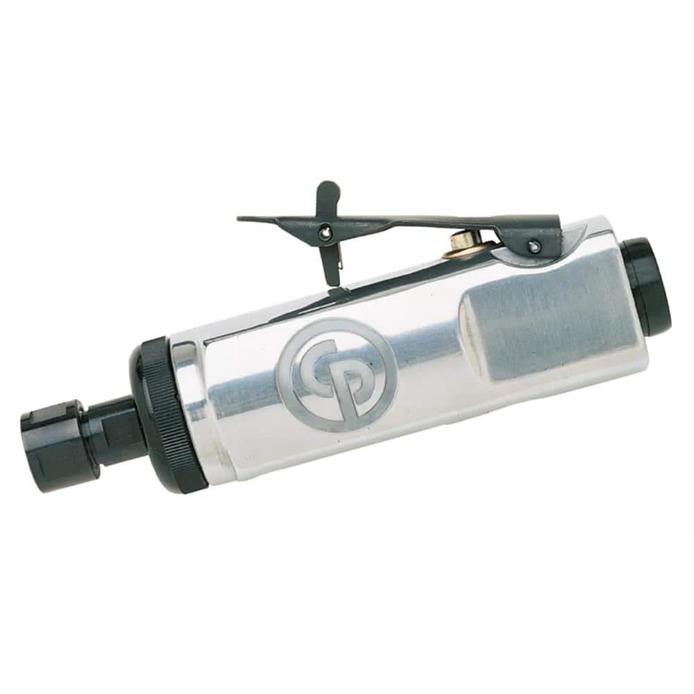 This tool has a rugged 1/2 HP motor. The adjustable power regulator matches speed to job for precise control. Rear exhaust directs air away from work.