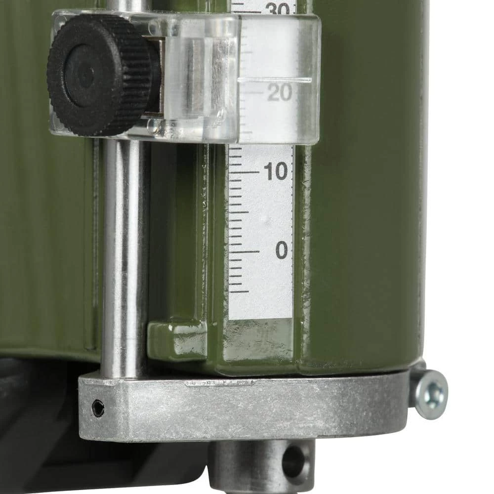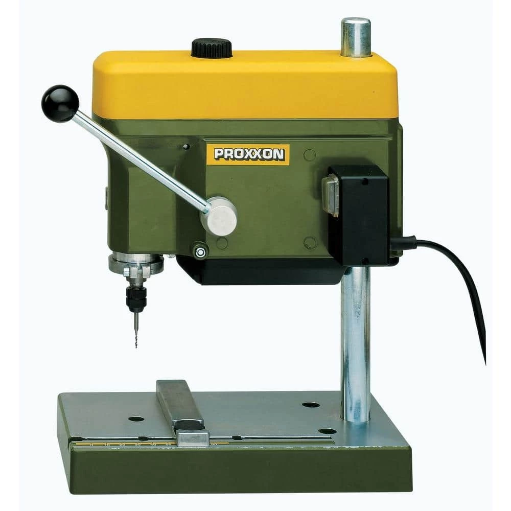 The Proxxon Bench Drill Press TBM 115 has a high quality machined work table of ribbed die-cast aluminum. The powerful motor, which is built into the super stable die-cast head of the machine, runs very quiet and has a long life expectancy. The unit’s aluminum pulleys and flat belt provides 3 spindle speeds of 1,800, 4,700 and 8,500rpm allowing high torque at lower speeds.