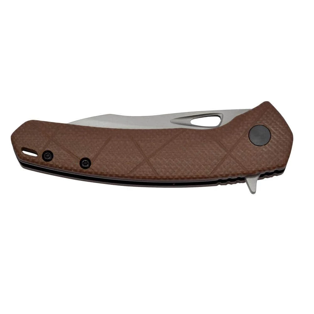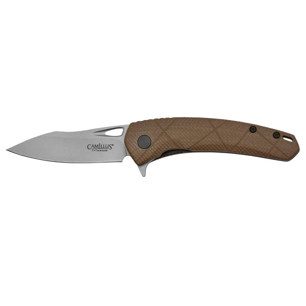 Camillus Blaze Carbonitride Titanium Folding knife in coyote brown features a 2.75 in. blade, with D2 Stainless Steel and a G10 handle. Carbonitride Titanium proprietary surface treatment offers enhanced edge retention, better protection from corrosion, chipping or flaking and is 10X stronger than untreated steel. The 4-in. textured G10 handle provides strength and durability through all weather conditions. Blaze offers a Dual Stainless Steel Bearing System for smooth 1-hand deployment with the flipper or thumb hole. The pocket clip provides easy carry convenience. Inherent in every Camillus product is its more than 140-year commitment to craftsmanship and care, supported with a lifetime warranty.