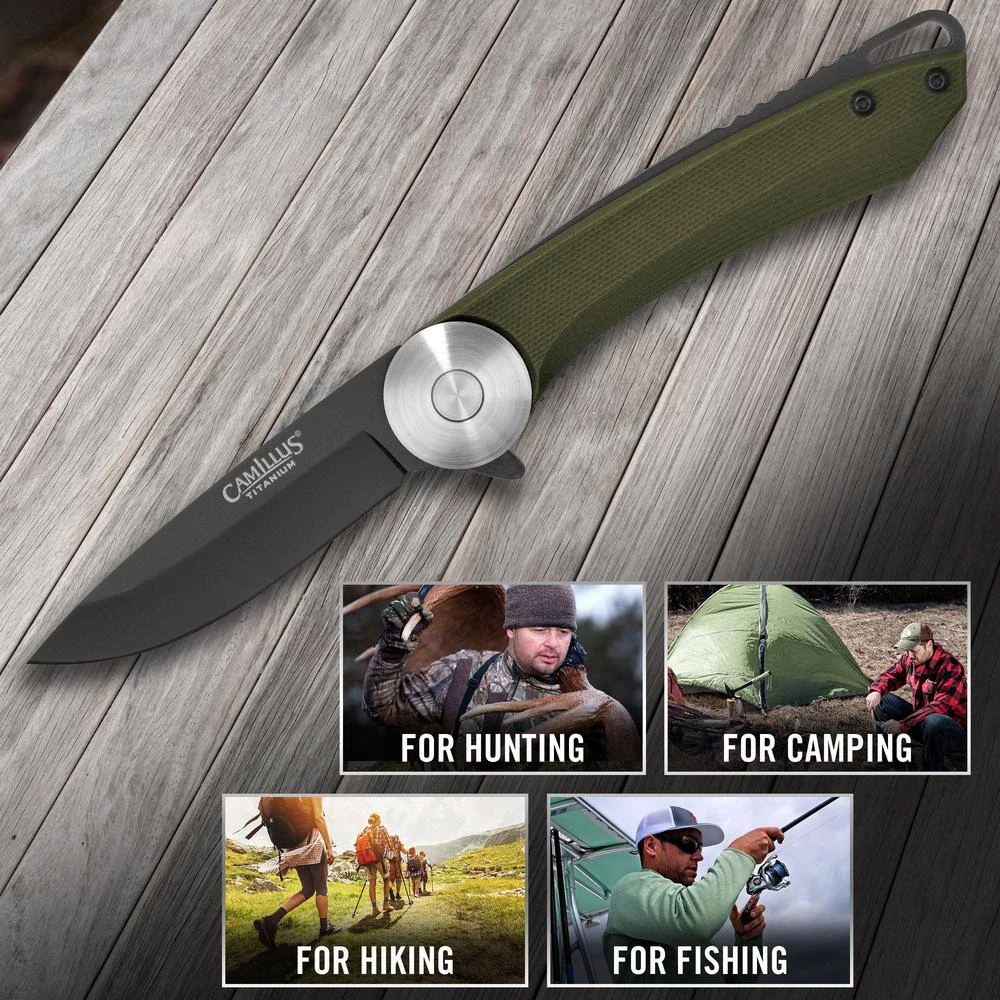 - Ideal: perfect for outdoor activities and easily compacts to take on camping and hunting trips, this knife works great for both left and right-hand users