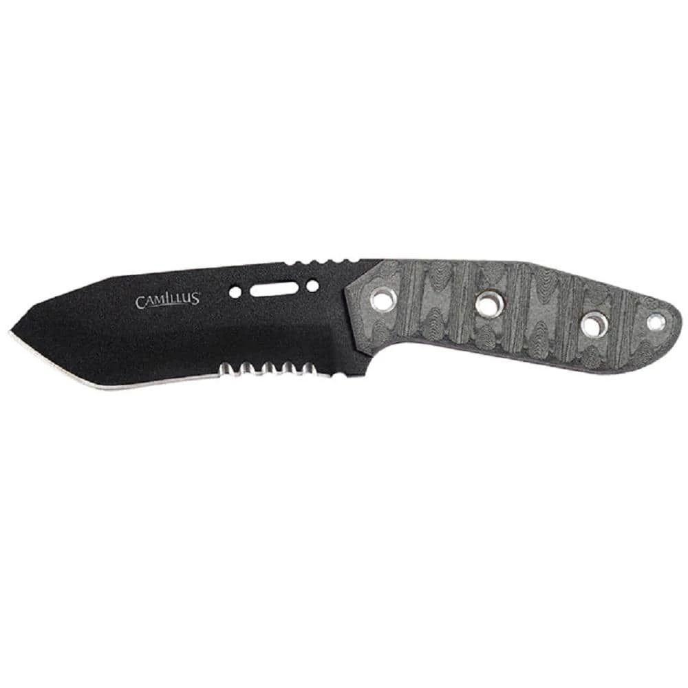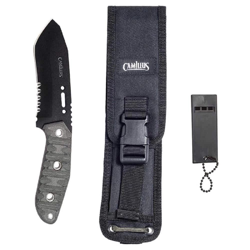The Camillus CK-9.5 Fixed Blade Knife is a 4.75 in. blade made of 1095 High Carbon steel which is a strong and great overall knife steel. The handle made of Micarta is extremely resistant to water, cold, heat, rot or corrosion therefore it is a perfect material for knife handles. Included with the CK-9.5 are a Ballistic Nylon Sheath and a Survival whistle for your protection and survival needs. Lifetime Warranty.