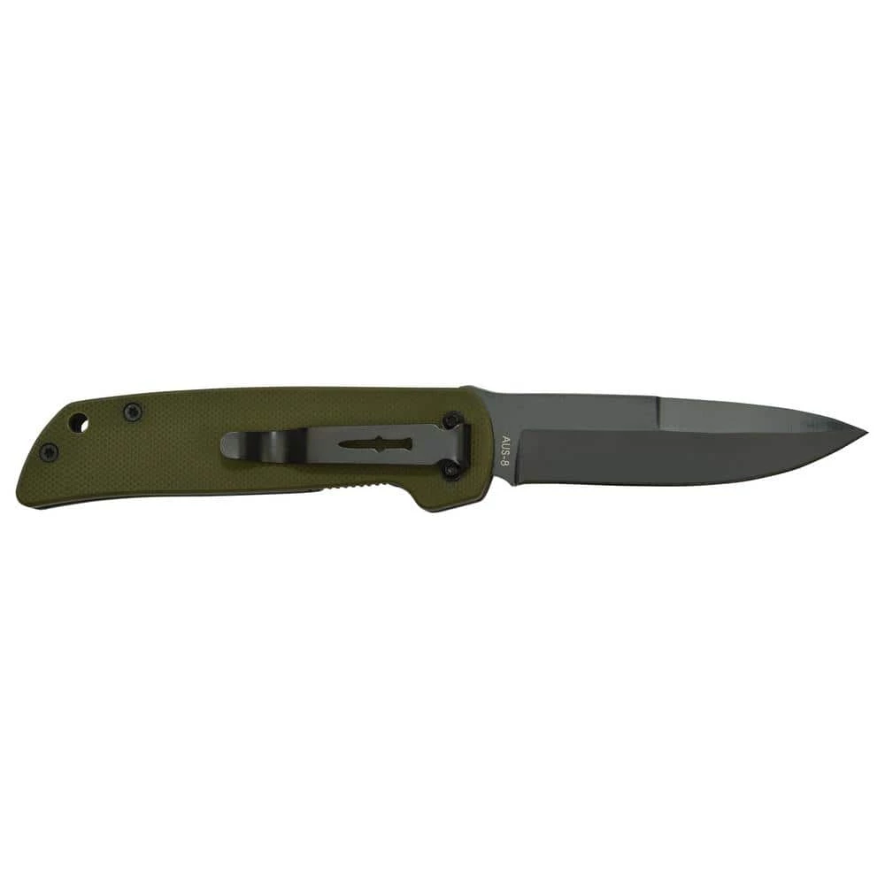 Camillus Cuda Mini Carbonitride Titanium Folding knife in drab green features a 3 in. blade, with AUS-8 Stainless Steel and a G10 handle. Carbonitride Titanium proprietary surface treatment offers enhanced edge retention, better protection from corrosion, chipping or flaking and is 10X stronger than untreated steel. The 3.75 in. textured G10 handle provides strength and durability through all weather conditions. Cuda Mini offers a Quick Launch Stainless Steel Bearing System and liner lock for easy 1-handed knife deployment. The pocket clip provides easy carry convenience. Inherent in every Camillus product is its more than 140-year commitment to craftsmanship and care, supported with a lifetime warranty.