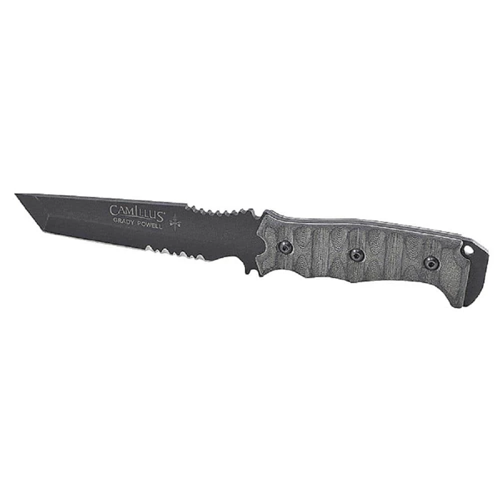 The Camillus 10.5 in. DAGR knife is a collaboration with Grady Powell, former Green Beret and member of the Military Team on the hit show – Ultimate Survival Alaska. Featuring a 4.87 in. Powder Coated partially serrated tanto blade, a full tang and a custom G10 Handle. It includes a Custom Molded Sheath with 360 belt clips for multi-position use that also has paracord notches. Lifetime Warranty. Sequentially Numbered.
