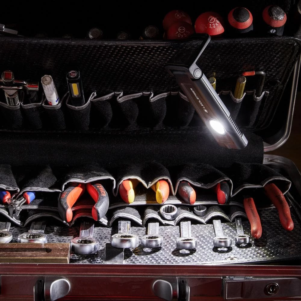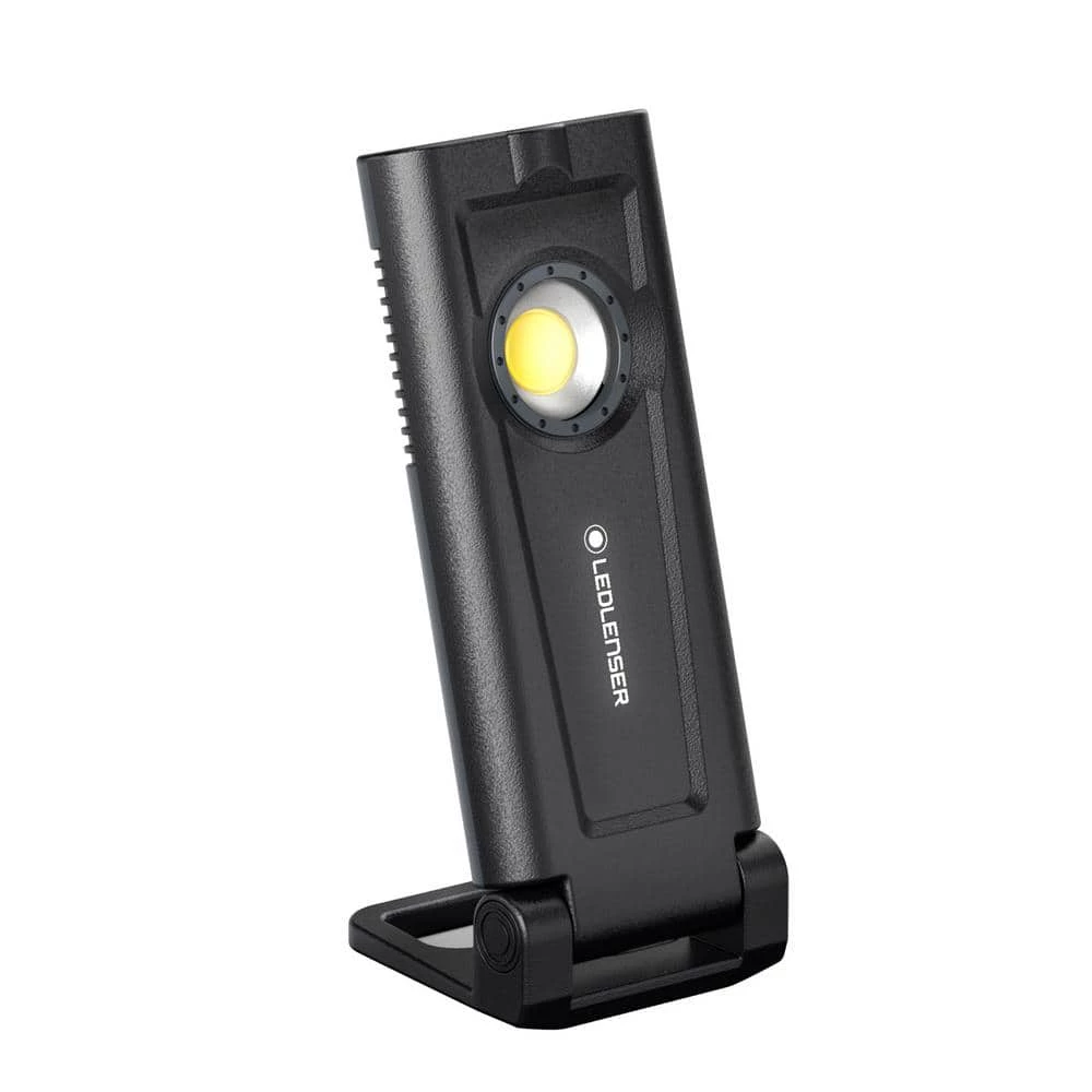 The LEDLENSER iF2R is a small work light that provides convenient lighting in tight spaces, or for illuminating small areas. It can be positioned in different ways with the base, hook and magnet. The wide floodlight lights up a job site with up to 200 Lumens of bright white light. The iF2R is also equipped with a small spotlight to use as a flashlight.