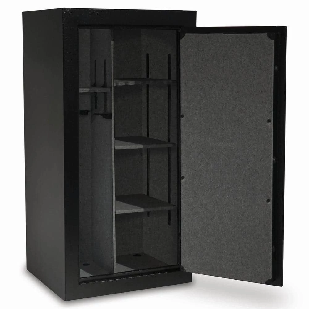The Sports Afield Instinct 30-Gun Biometric Fireproof Safe, SA5529INS-BIO, taps into our raw, instinctive desire to protect our home, family, and belongings. This gun safe is built for strength and security with its rugged steel body, quick access biometric lock, and two override keys to ensure you have access when you need it the most. Register up to 100 fingerprints to capture multiple positions of the same fingerprint or multiple users. Convert the interior to suit your needs with the adjustable shelves and the moveable scoped rile standoffs. The industrial design with its sleek Textured Matte Black powder coat finish and durable Matte Black drop handle creates a subtle accent and leaves a lasting impression. If you ever need it, our best-in-class Lifetime Warranty covers your entire safe against theft, fire, natural flood, and defective locks, parts, and paint.