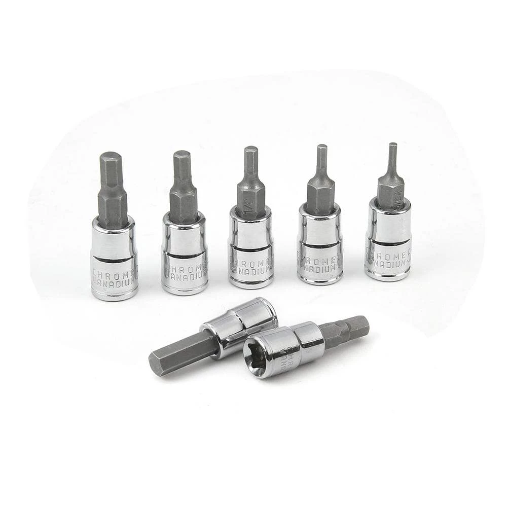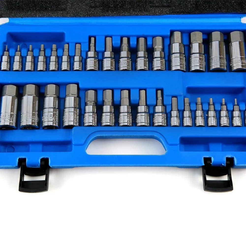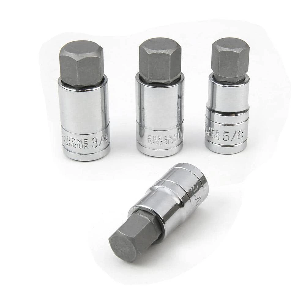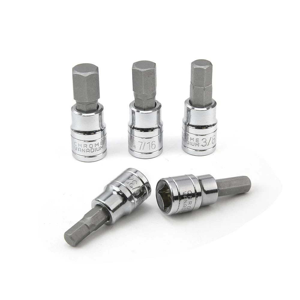 - 16-piece SAE hex bit sockets: 1/4 in. drive: 5/64 in., 3/32 in., 1/8 in., 5/32 in., 3/16 in., 7/32 in., 1/4 in., 3/8 in. drive: 9/32 in., 5/16 in., 3/8 in., 1/2 in. drive: 7/16 in., 1/2 in., 9/16 in., 5/8 in., 11/16 in., 3/4 in.