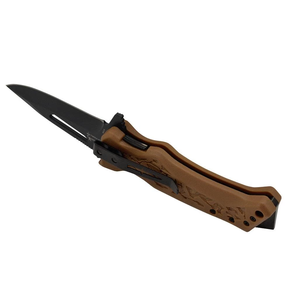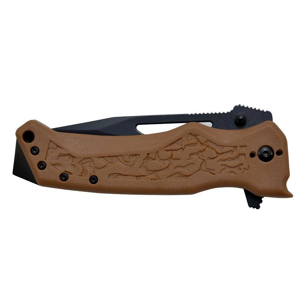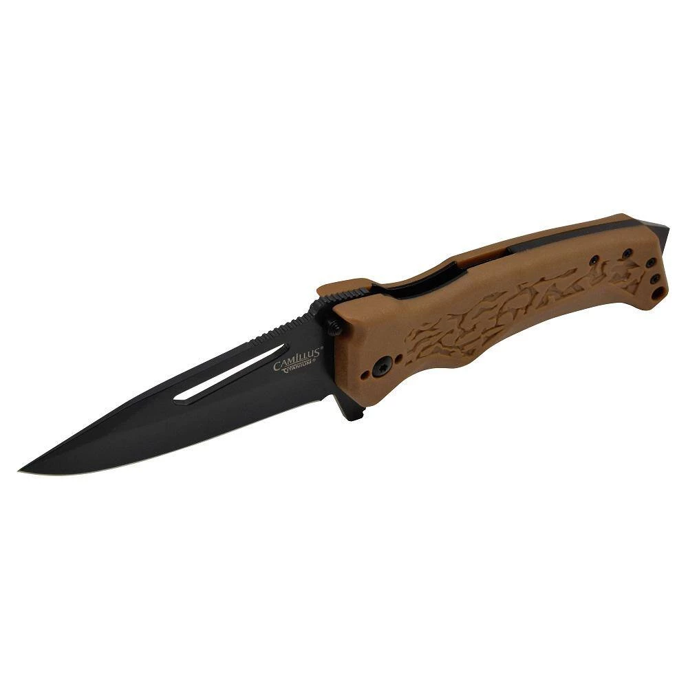 The Camillus NS-8 Folding Knife with a 3.25 in. blade made of Carbonitride Titanium Bonded AUS-8. Carbonitride Titanium is 1 of the hardest surface treatments containing titanium. The steel of this blade is bonded with Carbonitride Titanium making the NS-8 up to 10X harder than untreated steel. The handle made of Glass Filled Nylon, this material is used in many of our knives. We add glass-filled materials to polypropylene, ABS and other substrates in order to provide the strongest, most rigid handles. Lifetime Warranty.