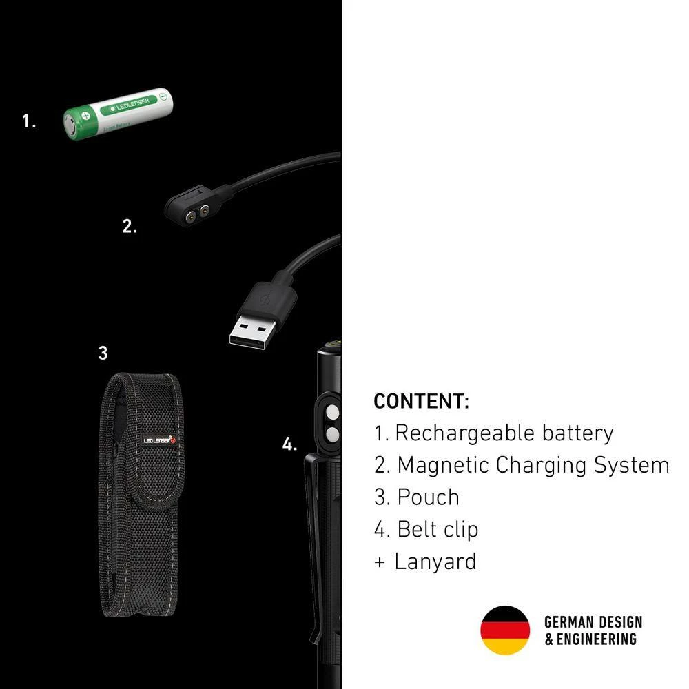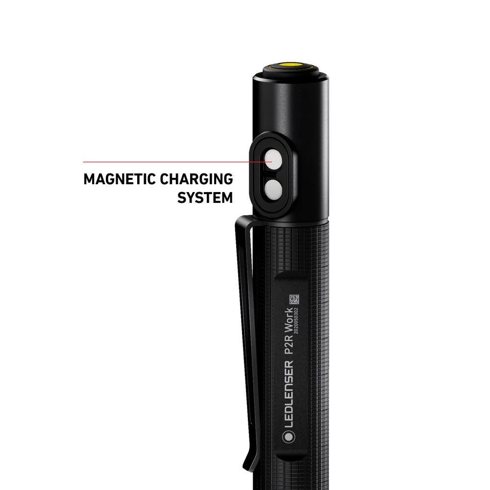 The P2R Work is one of the smallest tools that a craftsman should always carry thanks to its numerous features. The robust, focusing pen light is extremely compact and lightweight, but with great lumen output. With the pocket clip, the pen lamp can be easily attached to the pocket, so it is always ready for use. Thanks to the robust Magnetic Charge System, the battery can easily be recharged at any time.