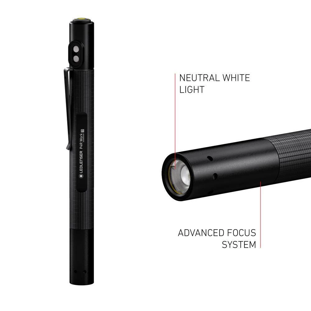 The compact yet powerful LEDLENSER P4R Work is a reliable pen light that is perfect for any toolbox. It features a slim and lightweight design, with tail cap switch and pocket clip for easy attachment. The LEDLENSER patented Advanced Focus System provides precise spot or flood lighting wherever needed. Thanks to the robust Magnetic Charge System, the battery can easily be recharged at any time.