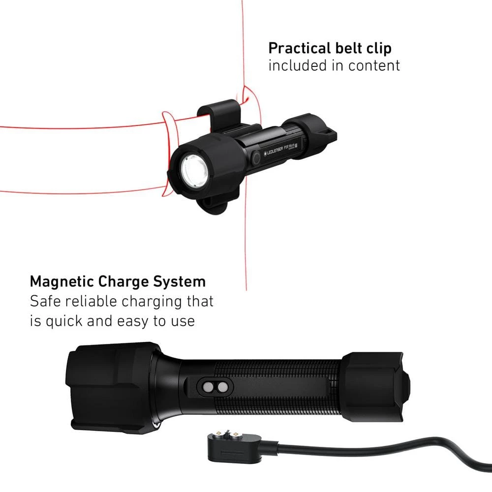 - LEDLENSER connecting system: includes charging station, an intelligent clip, and nylon sheath, a range of additional accessories (sold separately) allow for colored beams and a multitude of mounting options