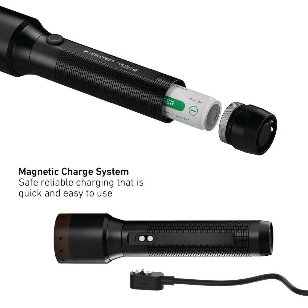 The LEDLENSER P6R Core is an all-new flashlight perfectly protected from dust and water. Its sleek design encases cutting-edge technology that provides bright views. The P6R Core is customizable with the innovative Smart Light Technology and can be charged with the Magnetic Charge System. It also has our patented Advanced Focus System combined with the new Multi-Core Optics Technology, which offers a consistent light beam in spot or flood mode and if necessary, even under water. And if you want to keep your hands free and illuminate a room, the lamp can easily be placed on the end cap.