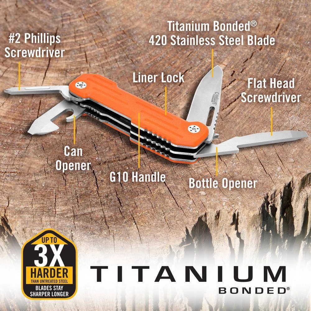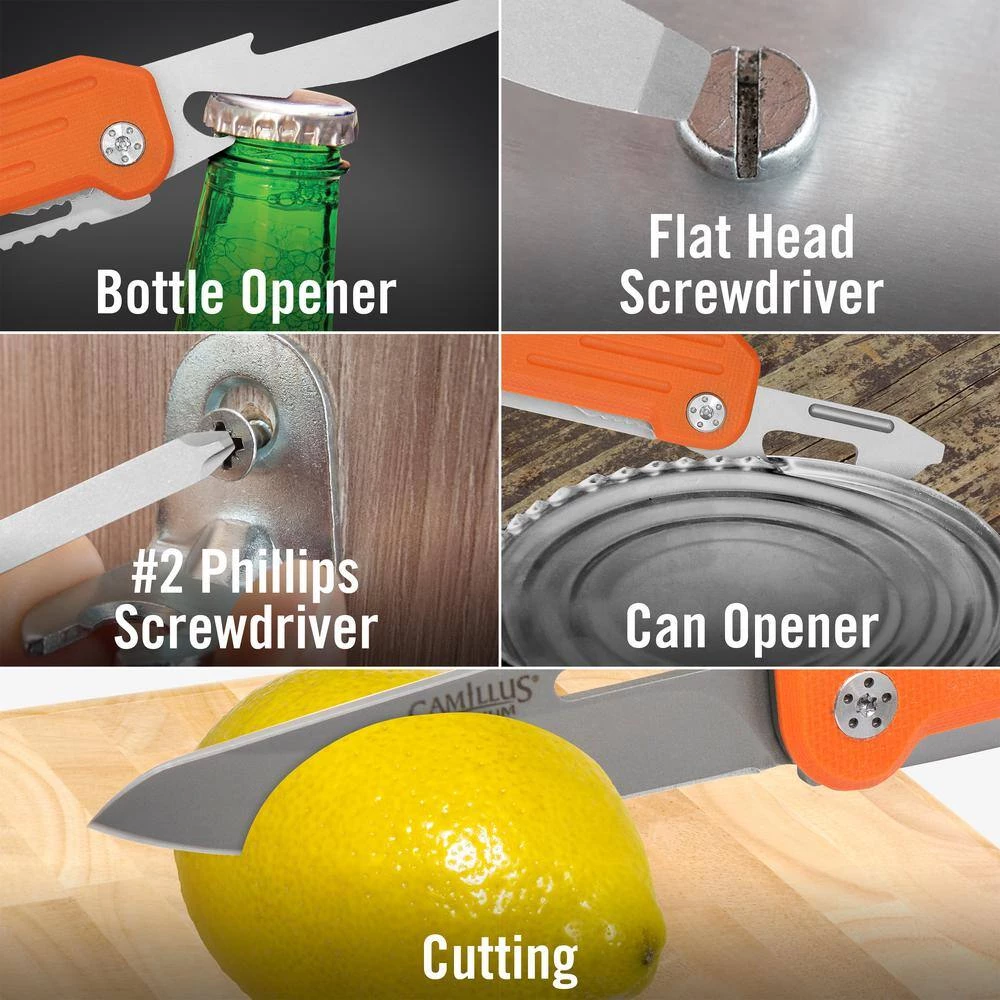 - Special feature: knife, bottle opener, flat head screwdriver, can opener and #2 Phillips screwdriver, this knife provides you with multiple functionalities and a great tool to have in your daily life