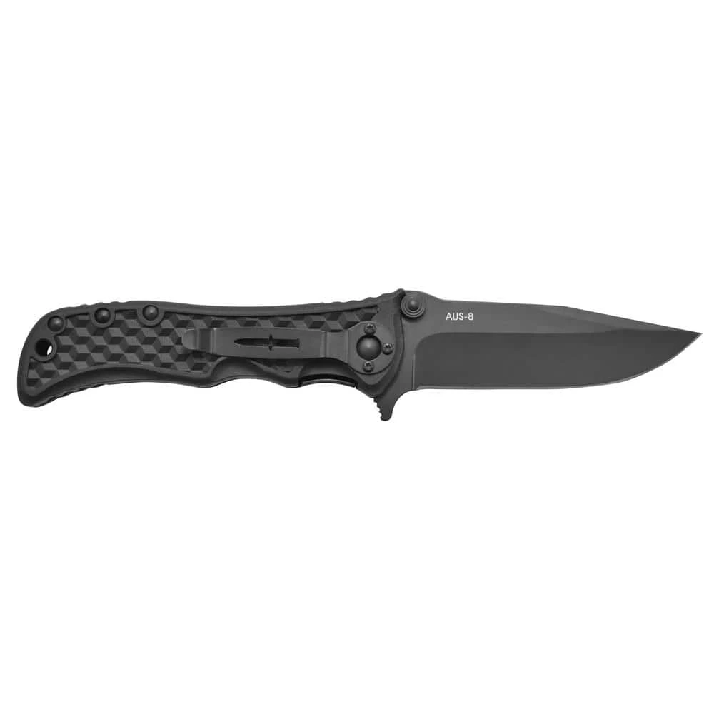 Camillus 8 in. Shatter Folding Knife with Glass Filled Nylon Handle and AUS-8 Steel. AUS-8 offers exceptional balance between toughness, edge sharpness and corrosion resistance. The steel is bonded with Carbonitride Titanium that resists rust and corrosion and is up to 10X harder than untreated steel so the blade stays sharper, longer. The handle is Glass Filled Nylon, a material that is used in many of our knives. We add glass-filled materials to polypropylene, ABS and other substrates in order to provide the strongest, most rigid handles. Liner Lock and Pocket Clip. Lifetime Warranty.