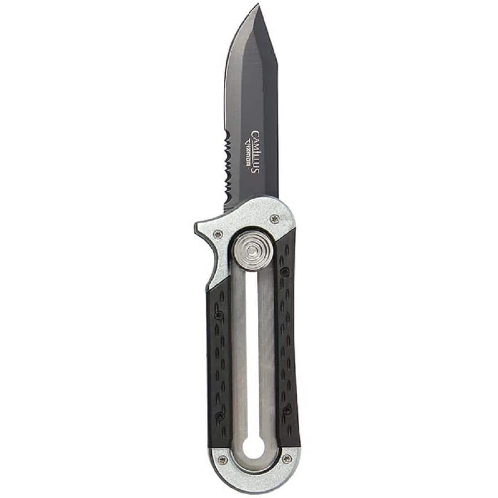 Camillus Slydr 8 in. Sliding Knife features a dual locking safety system and a 3.25 in. AUS-8 steel blade. The steel blade is bonded with Carbonitride Titanium that resists rust and corrosion and is up to 10X harder than untreated steel so the blade stays sharper, longer. As one of the oldest knife manufacturers, Camillus cutlery has always answered the call for quality and will continue to do so with hunting, fishing, sporting and tactical knives. Lifetime Warranty.