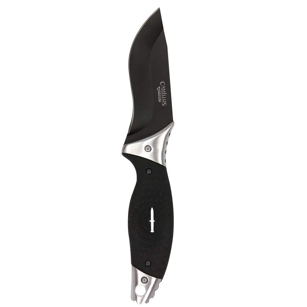Camillus ST6 9 in. Fixed Blade Knife with Ballistic Nylon Sheath and 4 in. AUS-8 Steel Blade. Steel is bonded with Carbonitride Titanium that resists rust and corrosion and is up to 10x harder than untreated steel so the blade stays sharper, longer. Ergo-Non Slip Grip. Lifetime Warranty.