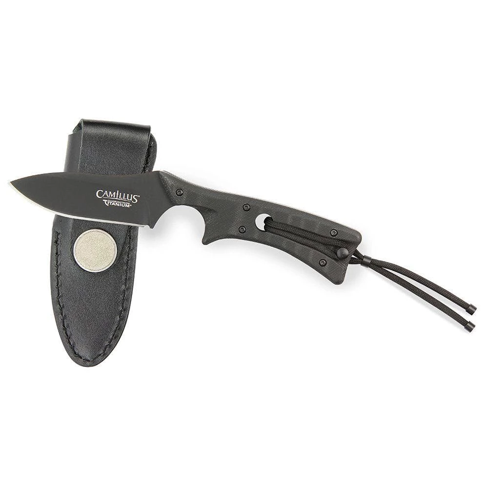 The Camillus tyrant fixed blade knife features a titanium non-stick blade, 3 in. D2 steel blade, composite G10 handle, lanyard hole with par cord loop and a leather sheath with built in sharpener. Camillus knives withstand the impossible task and continue delivering over extended use. Since 1876, Camillus cutlery has been supplying the world with reliable, innovative and quality made knives that have survived the true test of time. As 1 of the oldest knife manufacturers, Camillus cutlery has always answered the call for quality and will continue to do so with hunting, fishing, sporting and tactical knives.