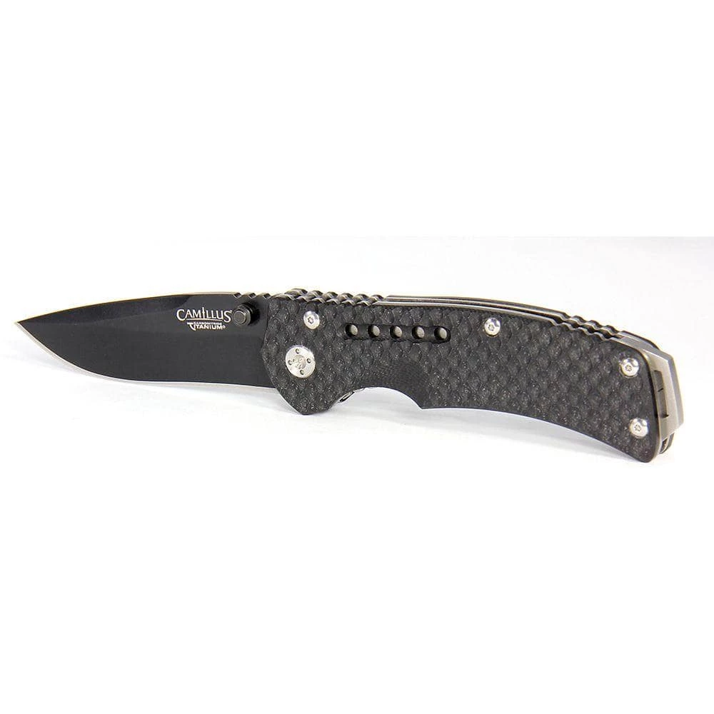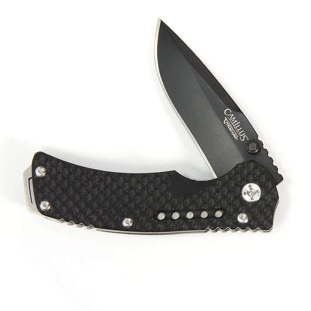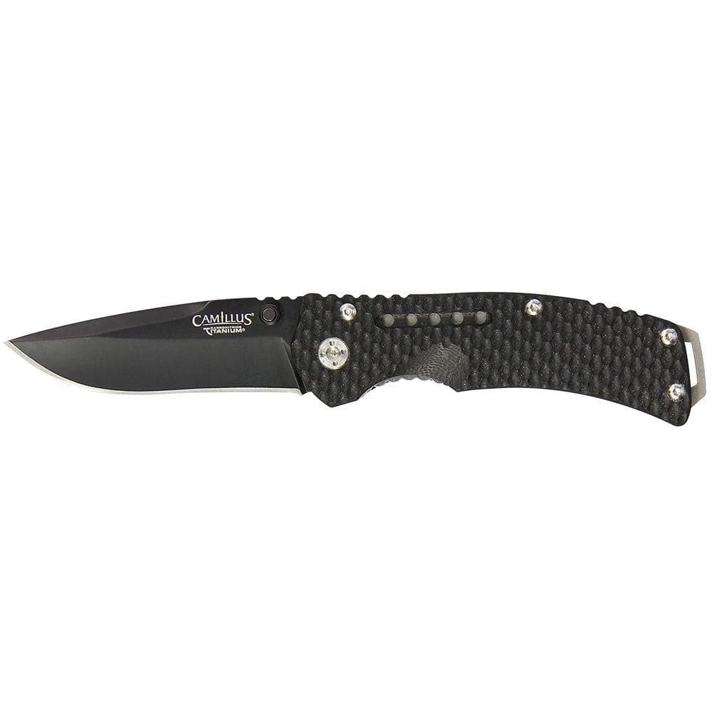 An 8 in. carbonitride titanium folding knife with a 3.25 in. AUS-8 steel blade. The Vortex has a black G10 handle, dual thumstud opener and lanyard hole. Since 1876, Camillus cutlery has been supplying the world with reliable, innovative and quality made knives that have survived the true test of time. As 1 of the oldest knife manufacturers, Camillus cutlery has always answered the call for quality and will continue to do so with hunting, fishing, sporting and tactical knives.